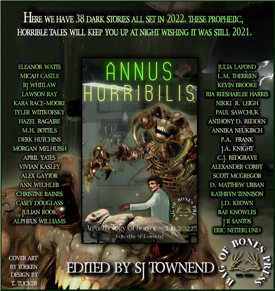 Bag of Bones Press has published a new anthology, and, yup, I’m in it! “Annus Horribilis” is now available, complete with my story, “The Eleventh Hour Toast” ( found on page 162) and 37 other chilling tales! Get it here: https://www.bagofbonespress.com/books